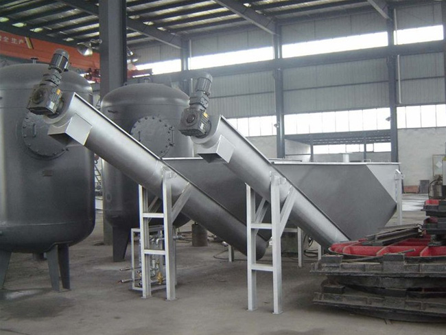 螺旋式砂水分离器用于污水处理厂沉砂池,将沉淀池排出的砂水混合液进行砂水分离。